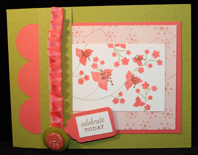 Embellishments: Scarlet Jewel button, Terracotta Tile button, Dark Brown button, Ripe Avocado grosgrain ribbon, Summer Sunrise twill ribbon